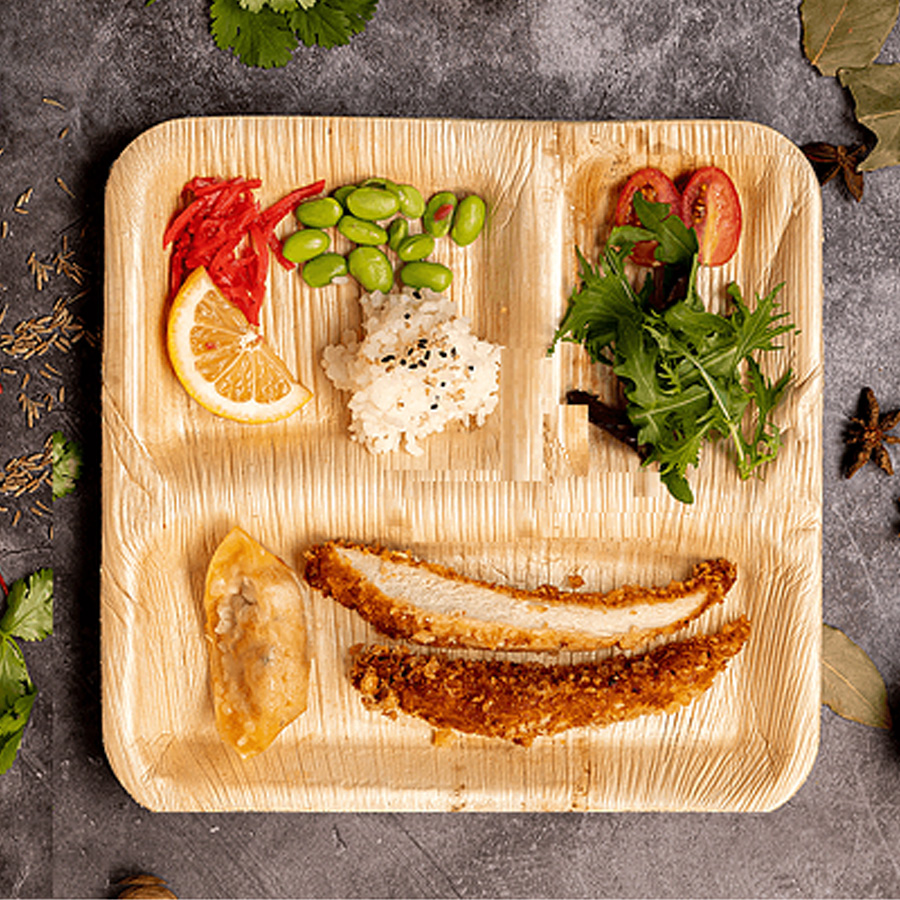 10” inch 3 CP natural disposable square plate is toxin – Free and odorless organic plate which is easy to use and serves better menus separately to keeps the taste of food remains original and luscious as it is.