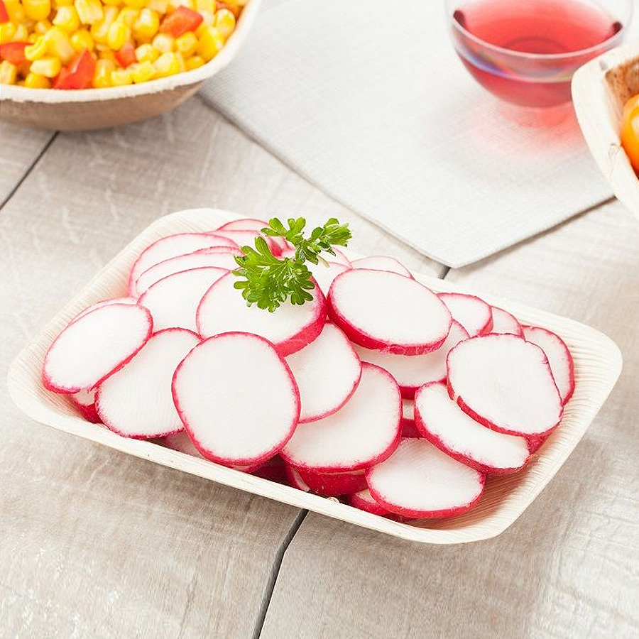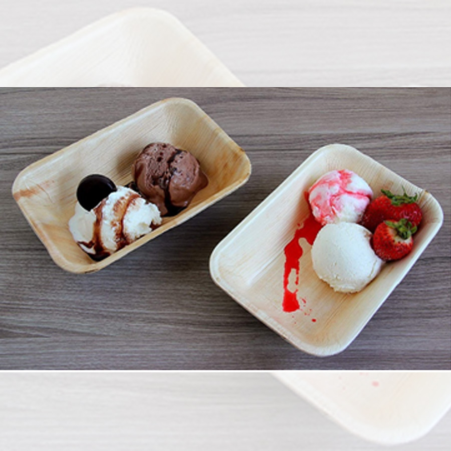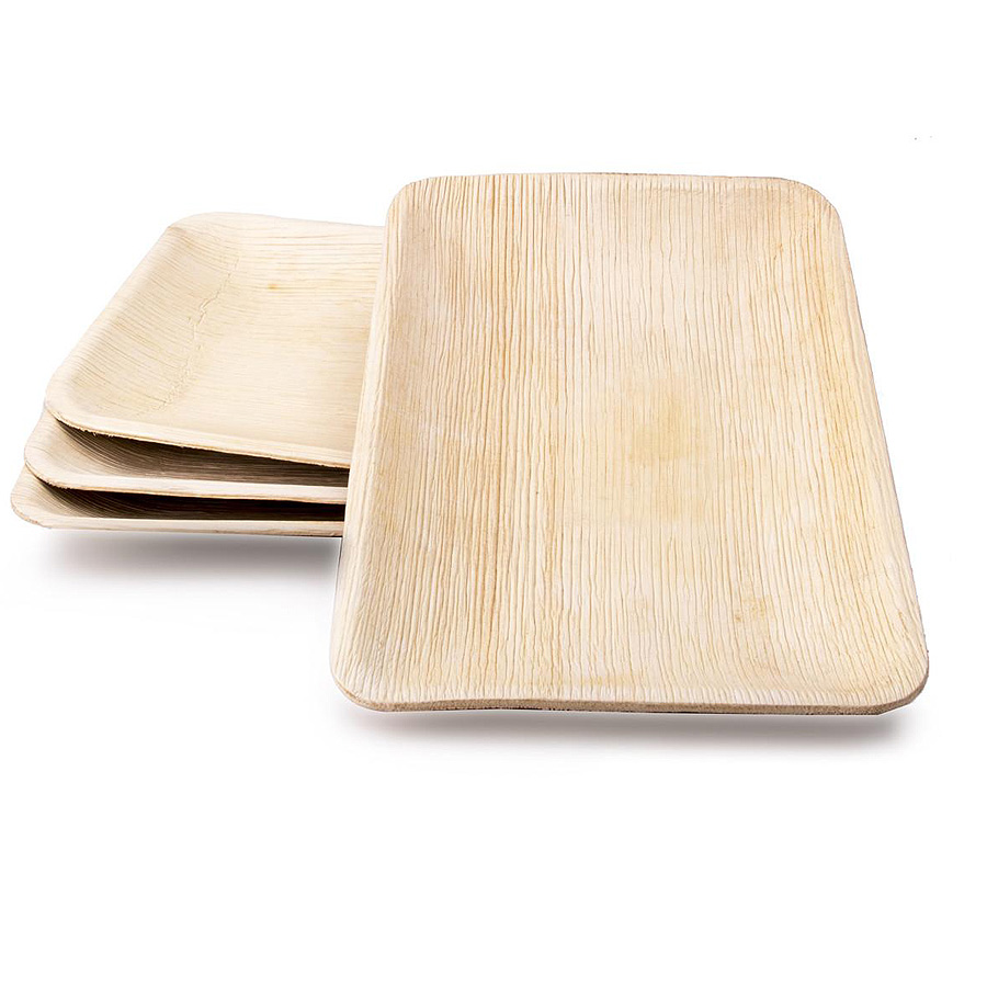 6 x 4” inch rectangular platter / tray is small size of organic palm leaf platter / tray. it is normally used by the people to serve a starter food appetizers like vegetable & fruit salads, sandwiches, dry Manchurians,pizza slice and many more at the same time of dwhich makes your food delicious, yummy and elegant to serve in naturally fallen leaves to your tableware.